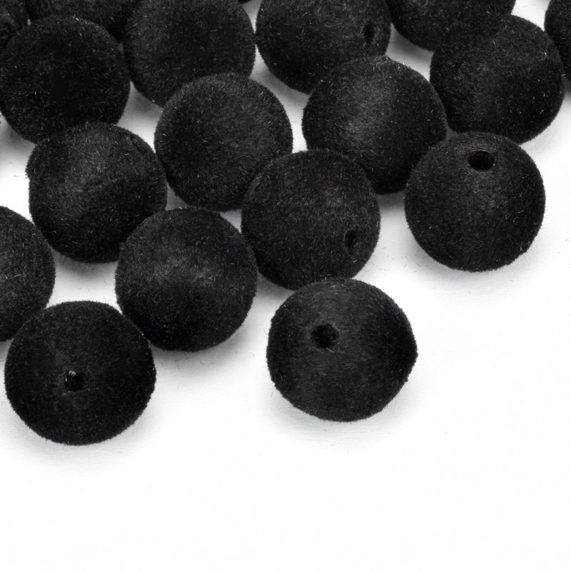 Бусины бархатные, Круглые, 12 мм, Черные (BUS-060179) / 1 уп (10 шт)