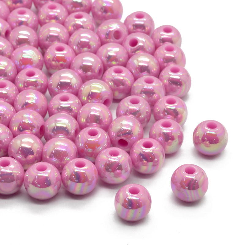 Бусины для сумок ОПТ, Пластиковые радужные, Круглые, 8 мм, Розовые (BUS-060276) / 1 уп (450 г)