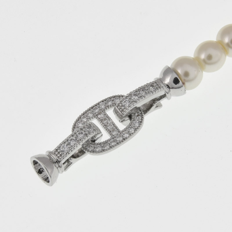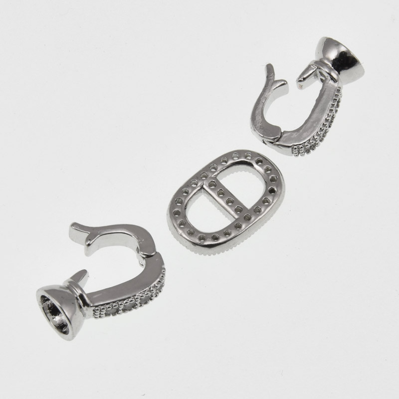 Застёжка, 32х10 мм, Латунь с покрытием Родий, Куб. цирконий (ZAM-060845) / 1 шт