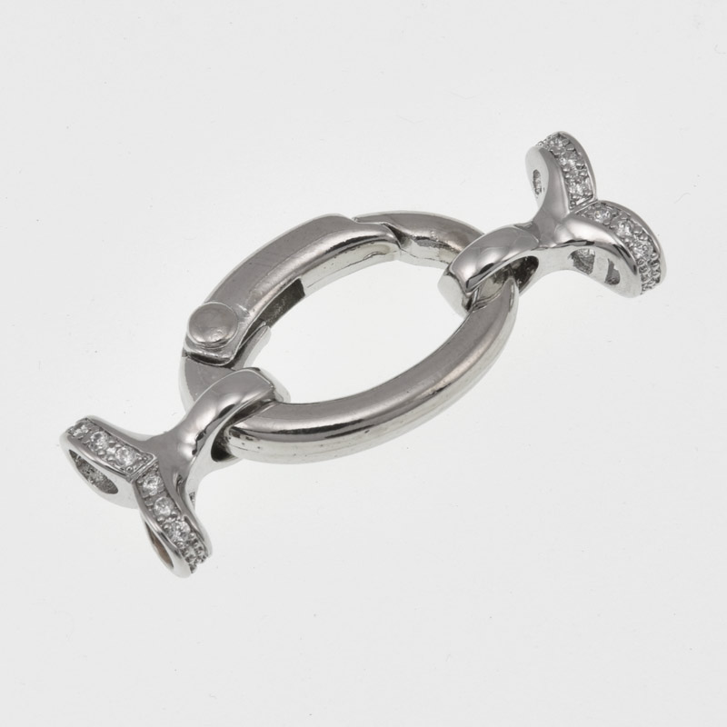 Застёжка, 36х15,5 мм, Латунь с покрытием Родий, Куб. цирконий (ZAM-060855) / 1 шт