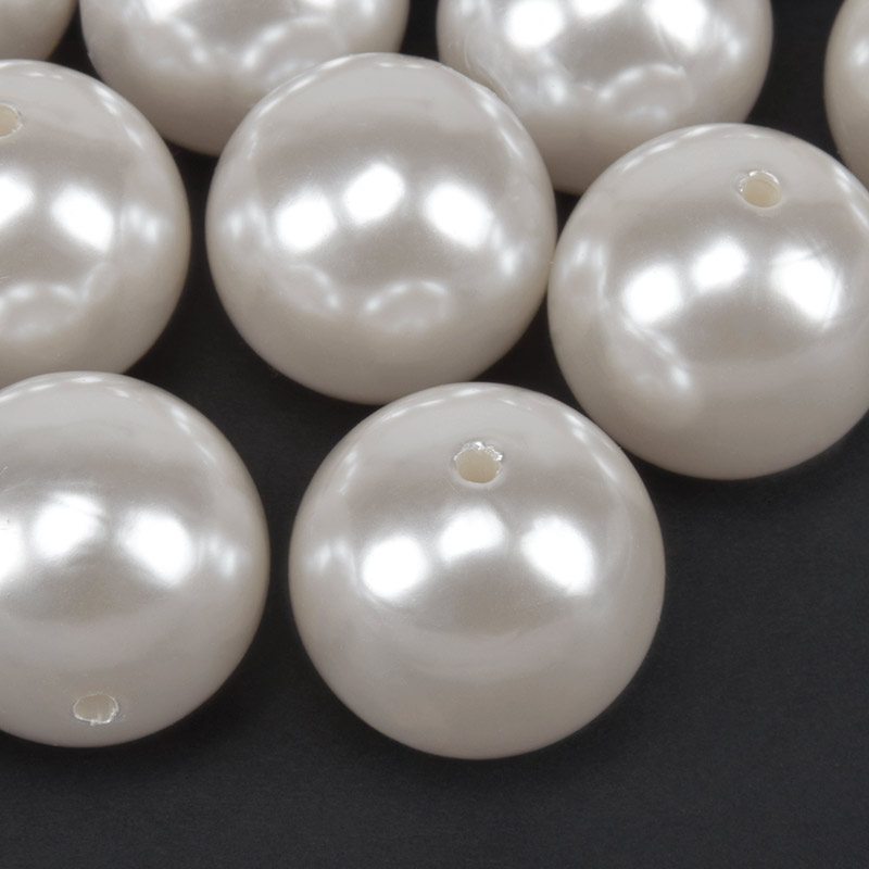 Бусины пластиковые, Круглые Жемчуг, 25 мм, Белые (BUS-060901) / 1 уп (2 шт)