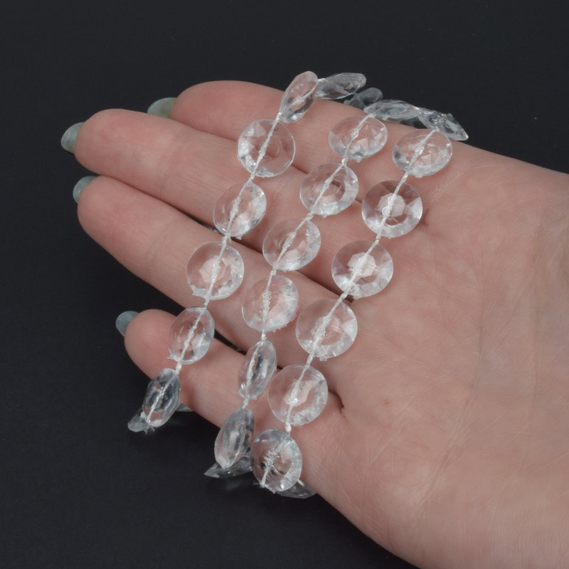 Бусины на нитке акриловые, Круглые плоские, 11 мм, Прозрачные (KAB-060985) / 1 м