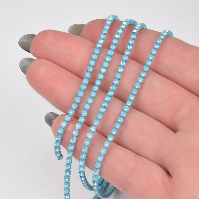 Стразовая цепь SS6 - 2,0 мм, Голубая, Стразы стеклянные голубые хамелеон (ZEP-061022) / 1 м