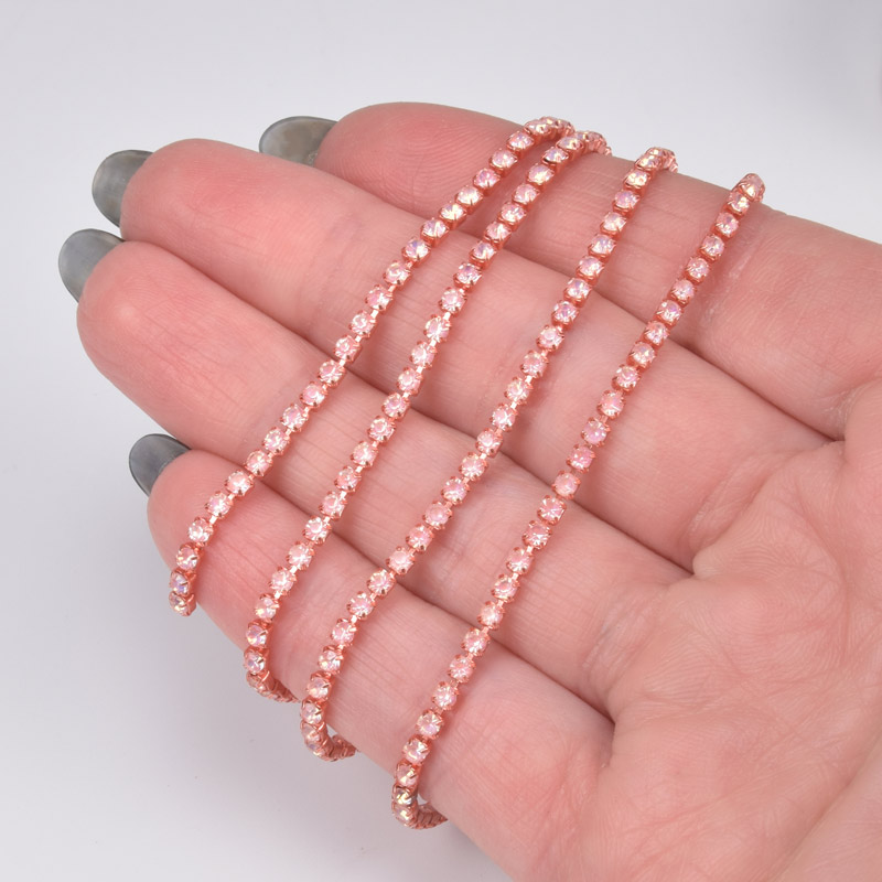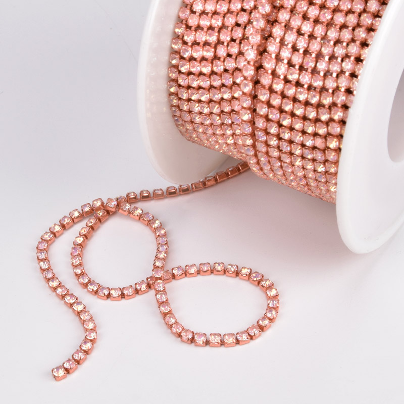 Стразовая цепь SS6 - 2,0 мм, Персиковая, Стразы стеклянные белые хамелеон (ZEP-061026) / 1 м
