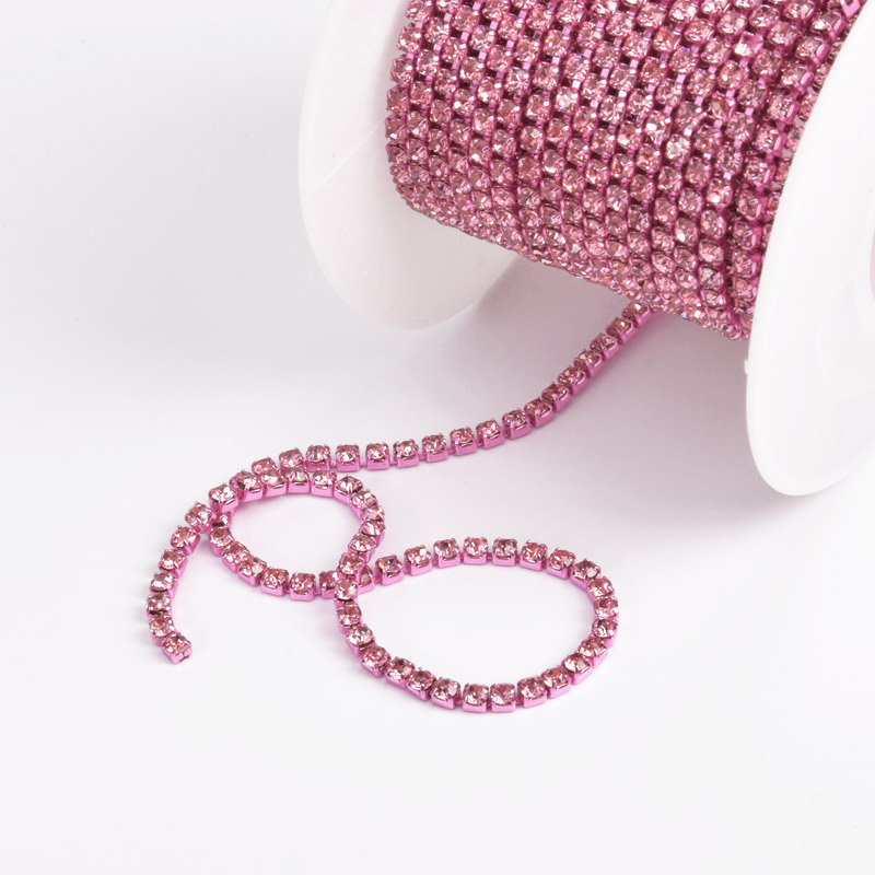 Стразовая цепь SS6 - 2,0 мм, Розовая, Стразы стеклянные розовые (ZEP-061029) / 1 м