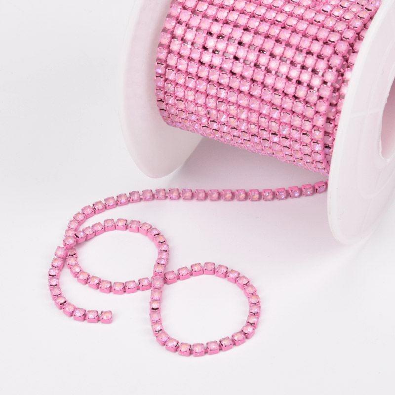 Стразовая цепь SS6 - 2,0 мм, Розовая, Стразы стеклянные розовые опал (ZEP-061030) / 1 м