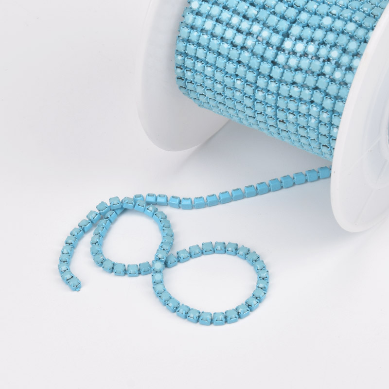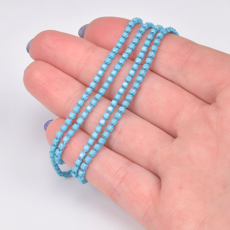 Стразовая цепь SS6 - 2,0 мм, Голубая, Стразы стеклянные голубые опал (ZEP-061031) / 1 м