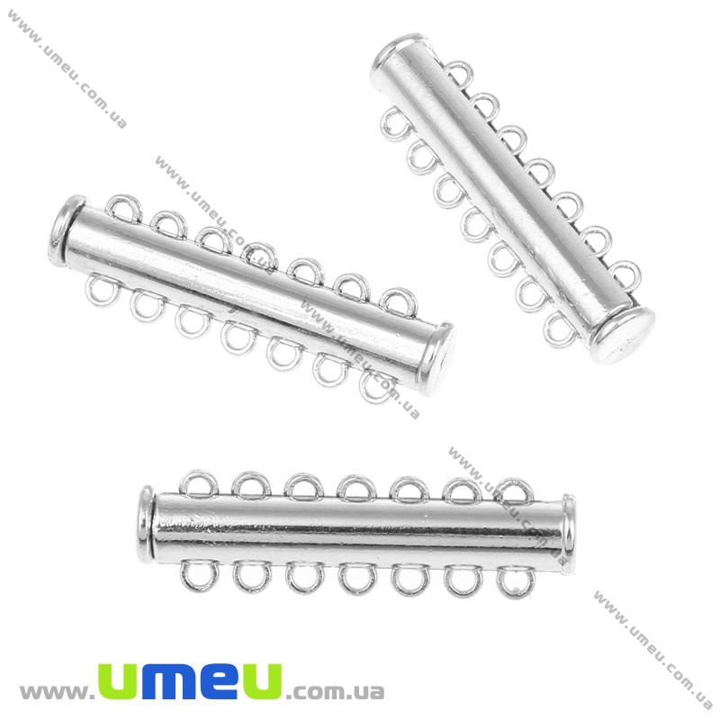 [Архив] Магнитный замок-слайдер на 7 нитей, Темное серебро, 38х11 мм (ZAM-006604) / 1 шт