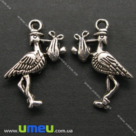 [Архив] Подвеска металлическая Аист (двухстор.), Античное серебро, 22х17 мм (POD-006618) / 1 шт