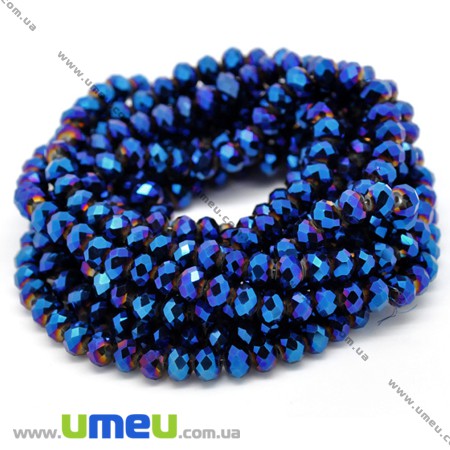 [Архив] Бусины рондели, 8х6 мм, Синие (металлик) (BUS-007317) / 1 шт