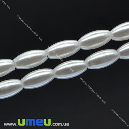 [Архив] Бусина пластиковая Рис Жемчуг, 8х4 мм, Белая (BUS-007447) / 1 нить