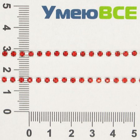 Стразовая цепь SS8 (2,4 мм), Светлое серебро, Стразы стеклянные красные (ZEP-007764) / 1 м