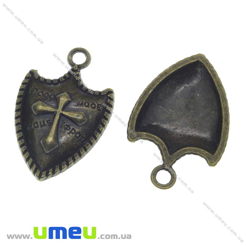 [Архив] Подвеска металлическая Щит с крестом, Античная бронза, 31х20 мм (POD-007943) / 1 шт