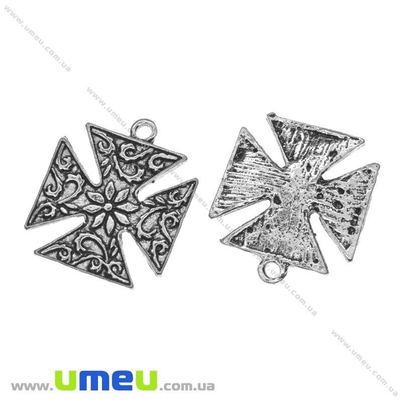 [Архив] Подвеска металлическая Крест, Античное серебро, 24х20 мм (POD-007953) / 1 шт