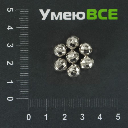 [Архив] Бусина пластиковая Круглая граненая, 8 мм, Серебряная (BUS-000803) / 1 шт