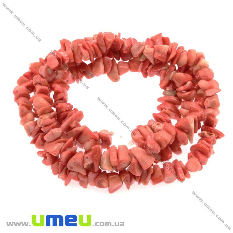 [Архив] Скол (крошка) натуральный камень Коралл, 8-13 мм, (88-90 см) (BUS-009205) / 1 нить