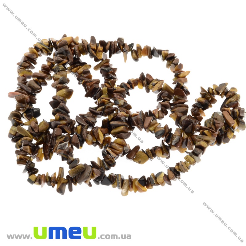 [Архив] Скол (крошка) натуральный камень Тигровый глаз, 5-8 мм, (84-86 см) (BUS-009411) / 1 нить