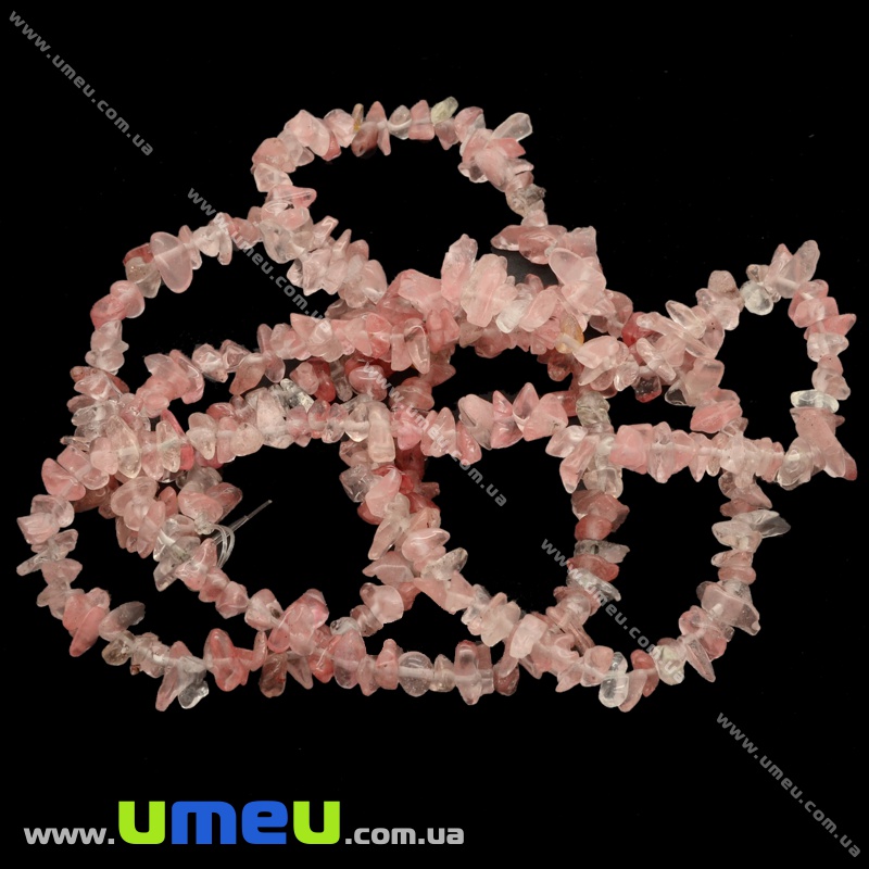 [Архив] Скол (крошка) натуральный камень Кварц вишневый, 5-8 мм, (88-90 см) (BUS-009415) / 1 нить