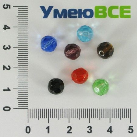 [Архив] Бусина стеклянная, 8 мм, Граненая круглая, Голубая (BUS-000980) / 1 шт