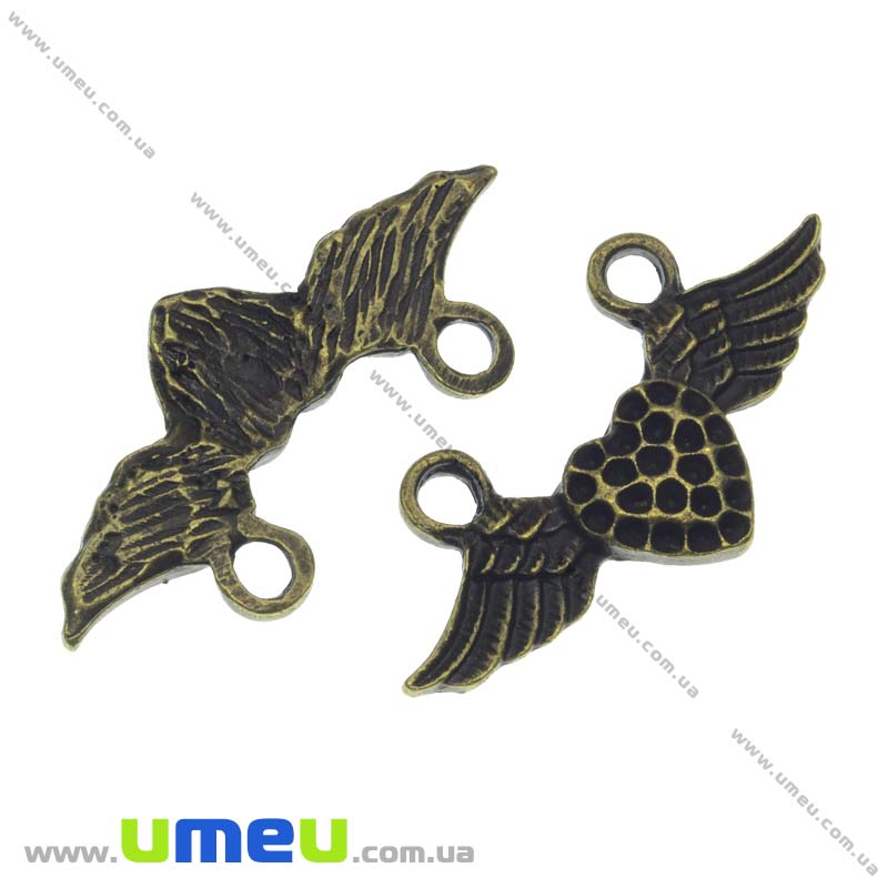 Есть место под стразы. Размер страз 1.5 ммКоннектор металлический Сердце с крыльями, 33х15 мм, Античная бронза (KON-013434) / 1 штKON-0134345.50₴3.85₴ / шт -