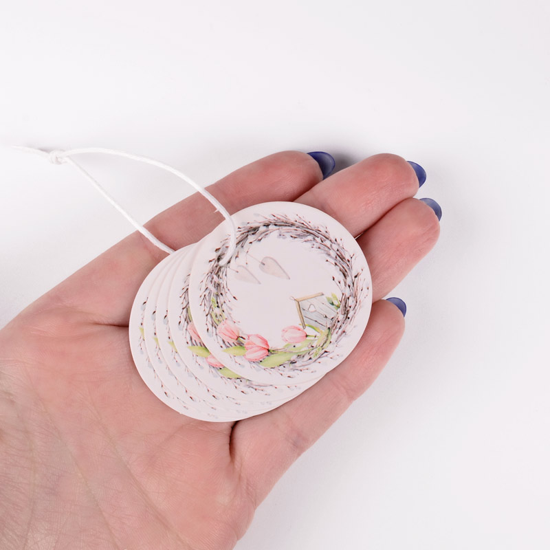 Бірки для подарунків з принтом, 40 мм, Білі (UPK-056262)