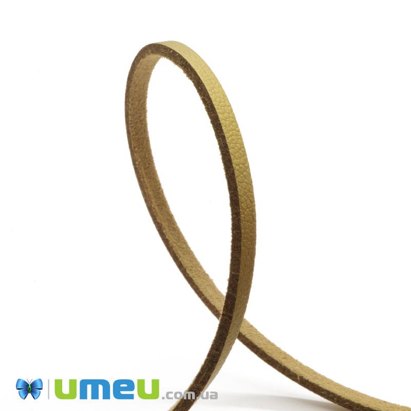 Штучний шкіряний шнур плоский, Бежевий, 5х1,5 мм (LEN-033663)