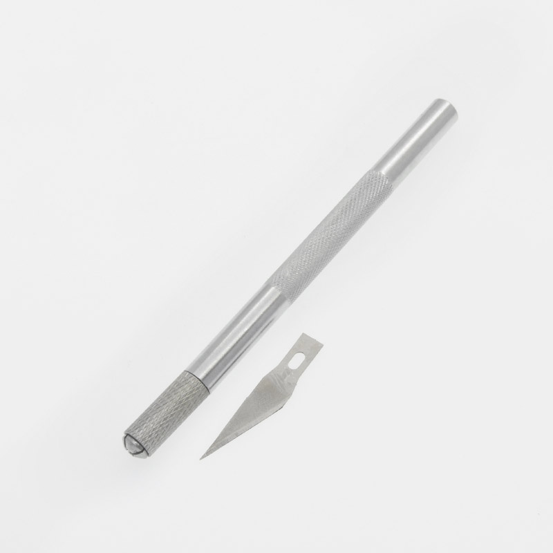 У набір входить: макетний ніж, ковпачок та 6 змінних лез у пластиковій колбі.