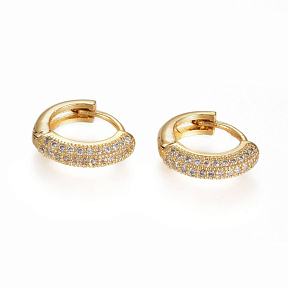 Сережки-кільця Huggie, Латунь з покриттям 18 kt, Стрази куб. цирконій, 13х3,5 мм (OSN-053109)В наявності