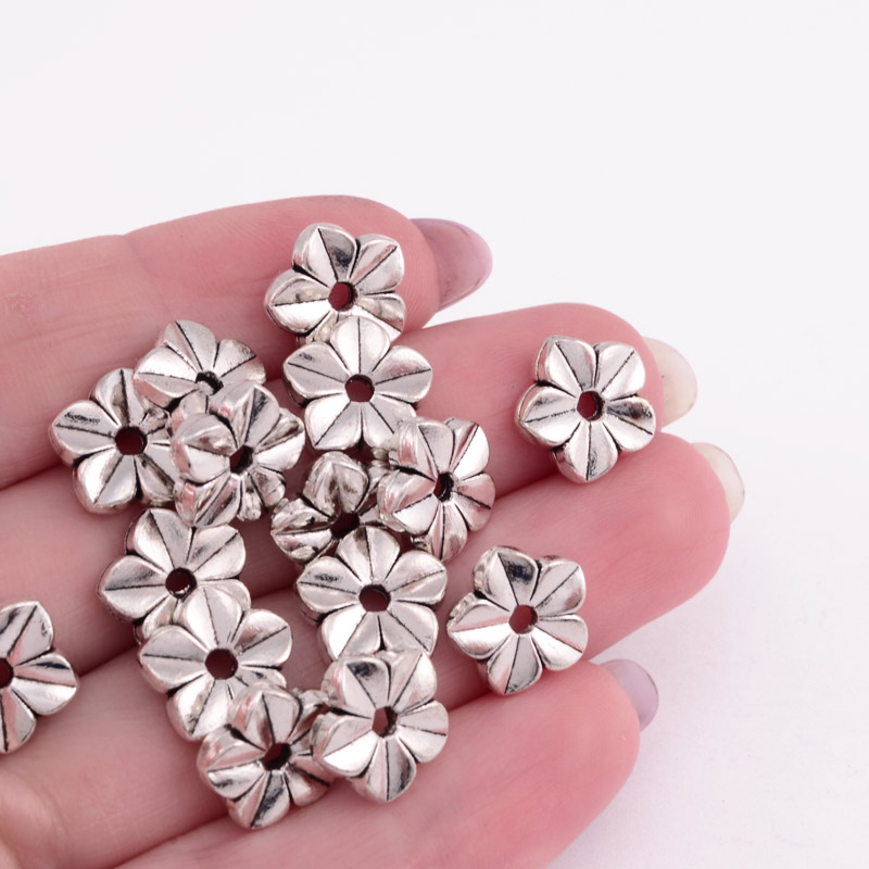 Намистини мет. Квіточки, 7,5 х4 мм, Античне срібло (BUS-055358)