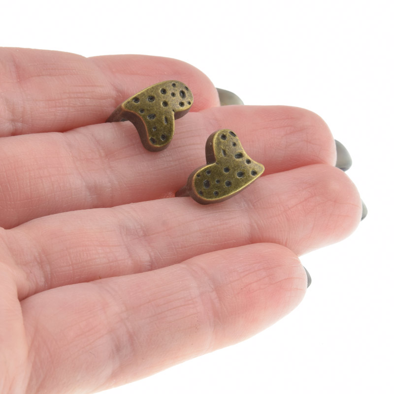 Намистини мет. Серце, 12х11 мм, Антична бронза (BUS-003134)