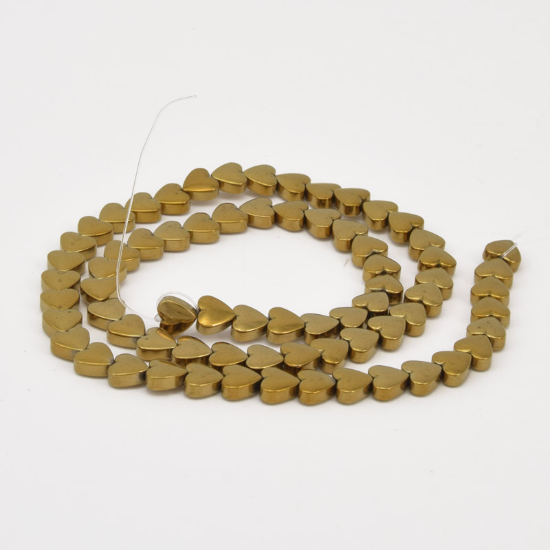 Намистини Гематит, Нат. камінь, Серце, 6х6х3 мм, З покриттям, Золотисті (BUS-057815)