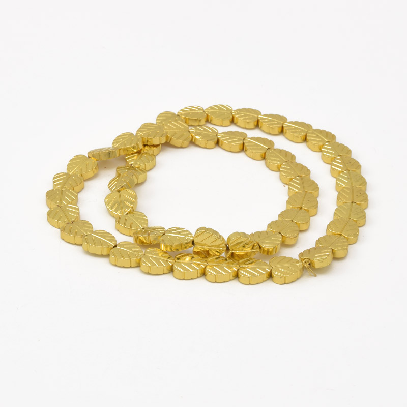 Намистини Гематит, Нат. камінь, Листок, 8х8х2,5 мм, З покриттям, Золотисті (BUS-057821)