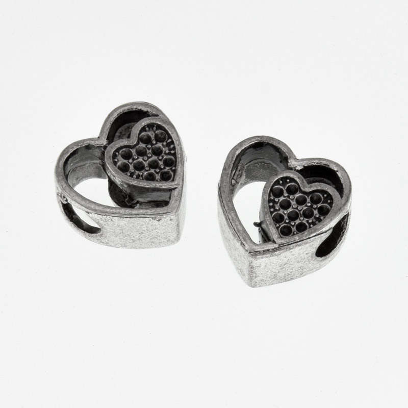 Намистини мет. Серце, 11х10х10 мм, Античне срібло (BUS-005744)