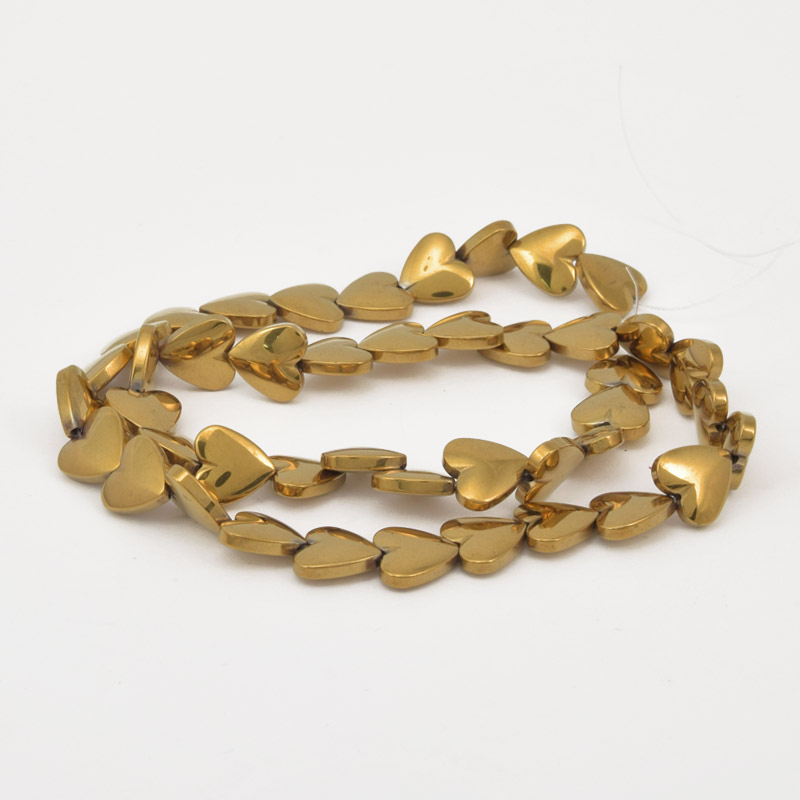 Намистини Гематит, Нат. камінь, Серце, 10х10х3 мм, З покриттям, Золотисті (BUS-057819)