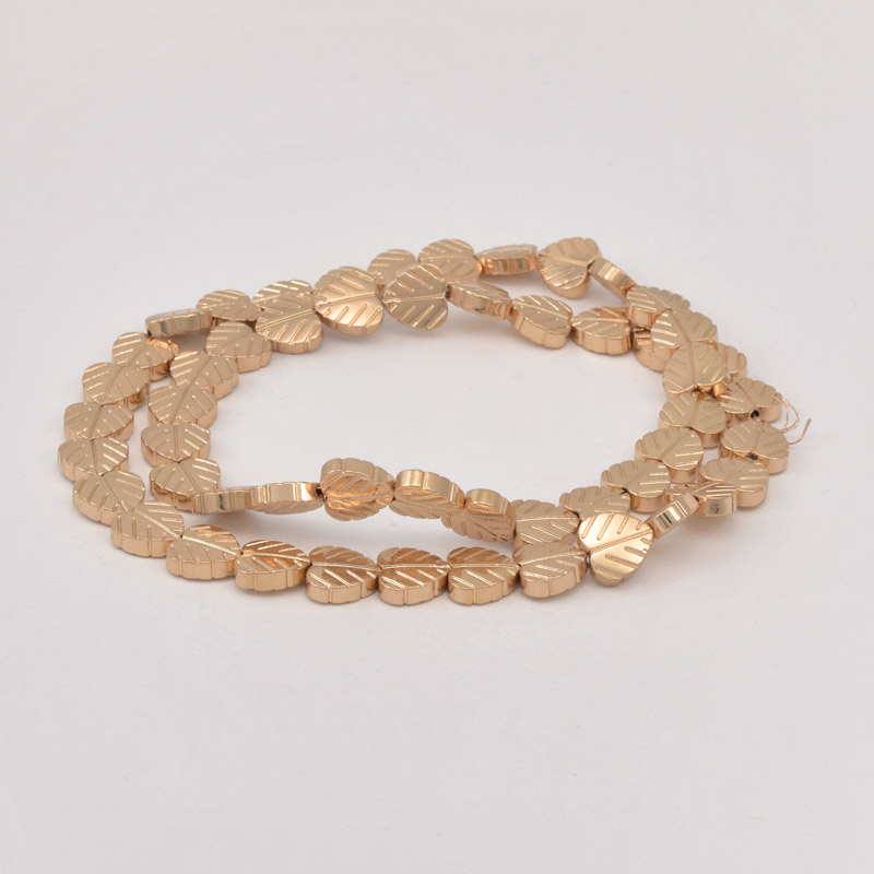 Намистини Гематит, Нат. камінь, Листок, 8х8х2,5 мм, З покриттям, Рожеве золото (BUS-057822)