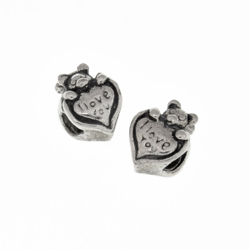Намистини мет. Серце з ведмедиком, 13х11х8 мм, Античне срібло (BUS-006461)