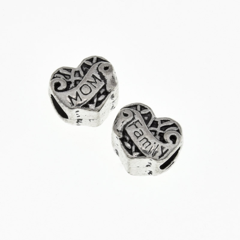 З одного боку намистини написано "Family", з іншого - "MOM"Намистини мет. Серце, 11х10х10 мм, Античне срібло (BUS-005744) / 1 уп (2 шт)BUS-00574412.00₴ / уп (2 шт) -
